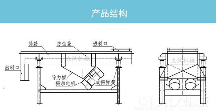 本篩機主要由篩箱、篩框、篩網(wǎng)、振動電機、電機臺座、減振彈簧、支架等組成。